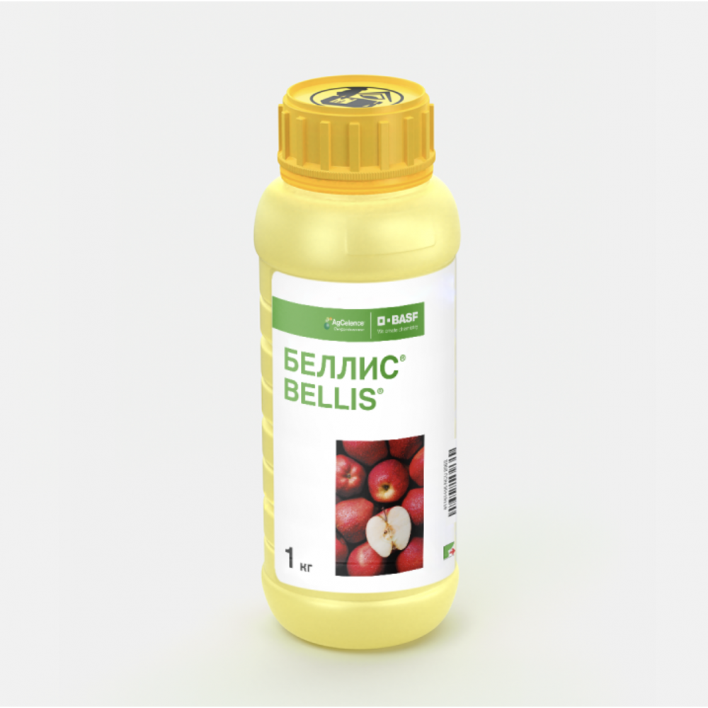 Беллис — комбинированный системно-контактный фунгицид от BASF (Германия) для защиты плодовых и овощных культур. Действующие вещества: боскалид (252 г/кг) и пираклостробин (128 г/кг), ВДГ. Контролирует болезни вегетации и хранения (мучнистая роса, парша, гнили), 3 класс опасности, срок ожидания 10 дней.