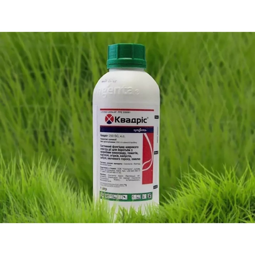 Квадрис — системно-контактный фунгицид профилактического действия от Syngenta (Швейцария) для защиты винограда, картофеля, лука, огурцов и томатов. Действующее вещество: азоксистробин (250 г/л), класс стробилуринов. Эффективен против фитофтороза, милдью, оидиума, мучнистой росы, пероноспороза, альтернариоза и других болезней.